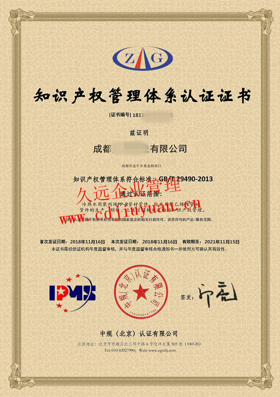 知識產(chǎn)權(quán)管理體系認(rèn)證證書